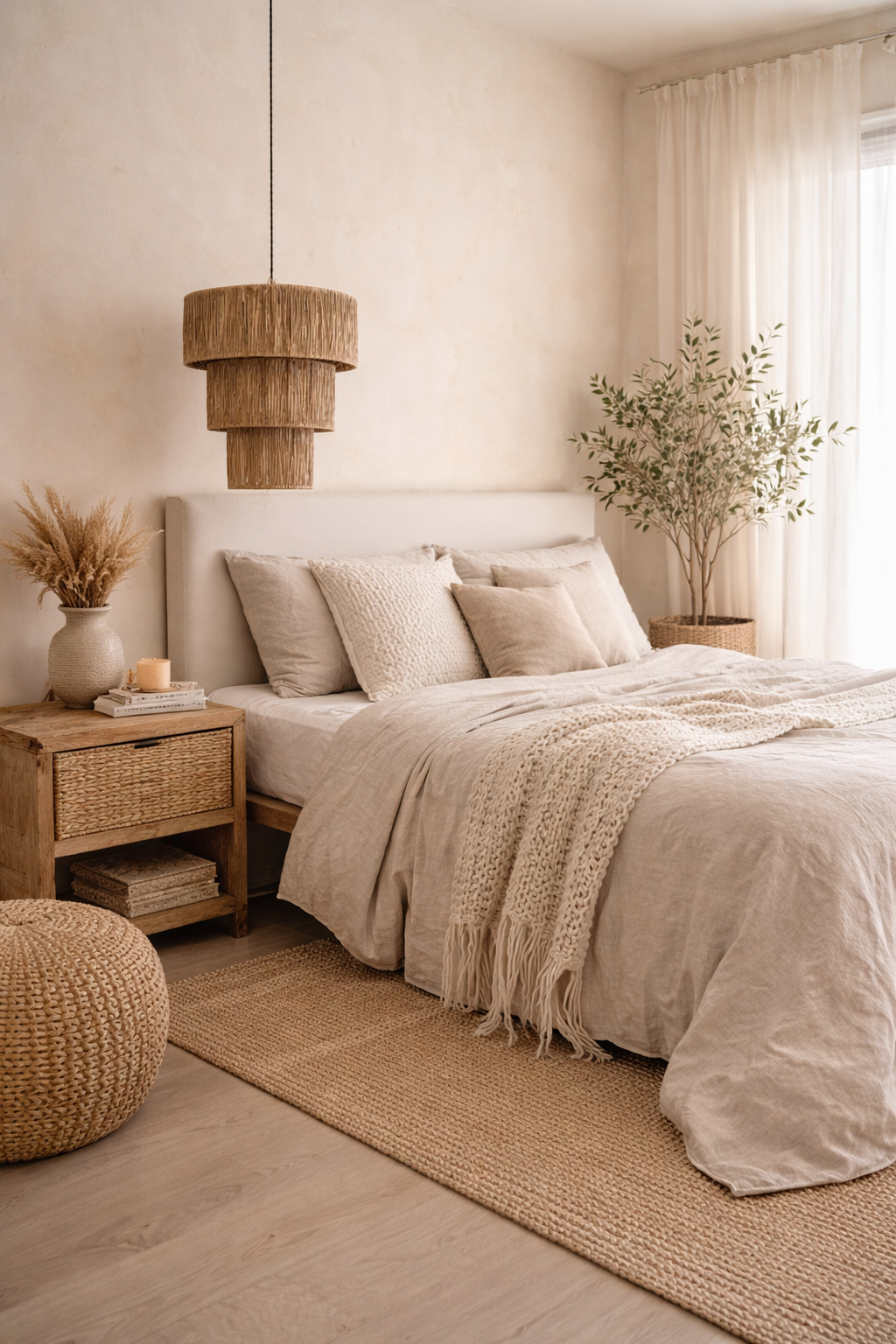 O pendente ideal para quem busca uma iluminação acolhedora e atemporal. Produzido artesanalmente em fibra natural, ele cria uma luz suave e envolvente, perfeita para dormitórios, salas e espaços de descanso.